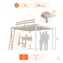 Wenn Sie es in Ihrer Wohnung einbauen möchten, sei es in einem gemütlichen Schlafzimmer, im Wohnzimmer, wo Sie sich entspannen, oder in der Garage, um zusätzlichen Platz zu schaffen, sollten Sie die Produktreihen S oder M in Betracht ziehen. Mit den Zwischengeschossen dieser Serien können Sie einen erhöhten Raum mit einer Höhe zwischen 160 cm und 282 cm schaffen.