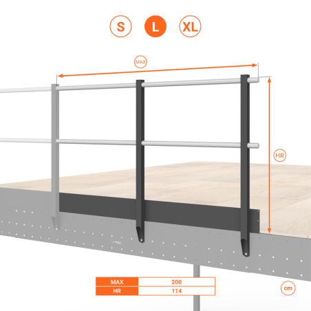 La barandilla de Seguridad con Placa XL es la más recomendable para instalarse en otras superficies.