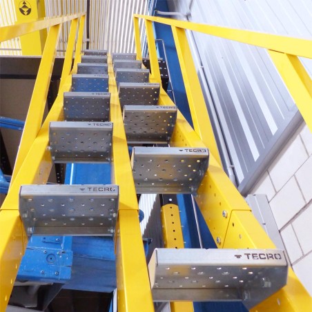 La escalera es regulable en altura, por lo tanto, es compatible con cualquiera de las entreplantas Tecrostar y otras superficies, siempre y cuando la HV corresponda con la de la estructura a la que se quiere anclar.