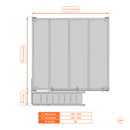 Pour agrandir un espace commercial, installer une terrasse dans votre jardin ou créer un premier étage dans votre entrepôt ou votre grand garage, nous vous recommandons les mezzanines de la gamme L, de 209 cm à 343 cm de hauteur.