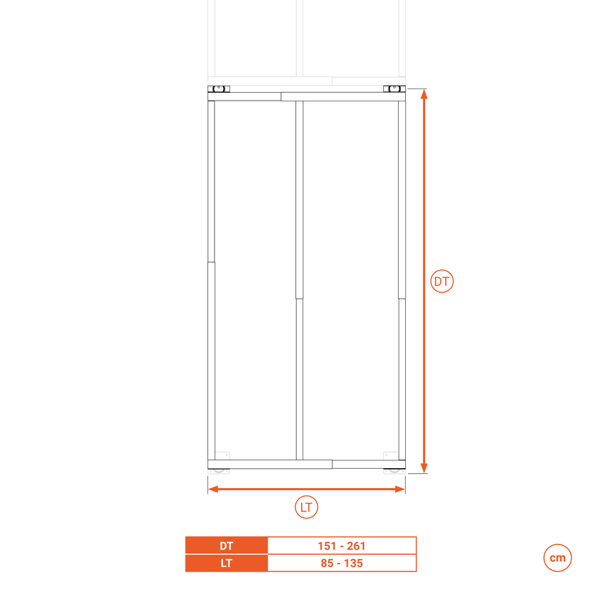 Si cette clôture s’est fait à l’extérieur, vous devez consulter à Tecrostar, car peut être nécessaire un kit de stabilité pour garantir la fixation à cause de la charge latéral du vent.